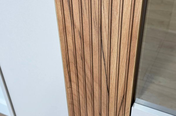 Вторая дверь, выполненная со стеклянной вставкой, позволяет демонстрировать коллекции, декоративные предметы или книги, придавая вашему пространству дополнительный шарм и элегантность.